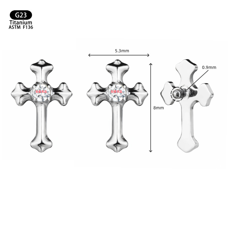 クロスボーダーF136チタン合金レトロクロスピアスジュエリーイヤリングG23内ネジリップピアス舌ピアス耳骨ピアス