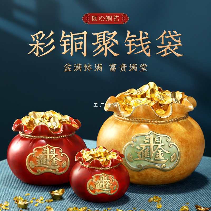 彩銅聚宝盆置物聚財貯金箱福袋銭袋家庭装飾客間真鍮開業プレゼント