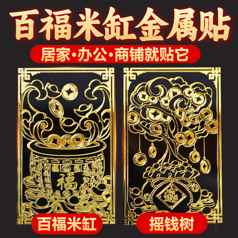 百福の米のかめの金属は財産を集めて金の木のシールを貼ります。