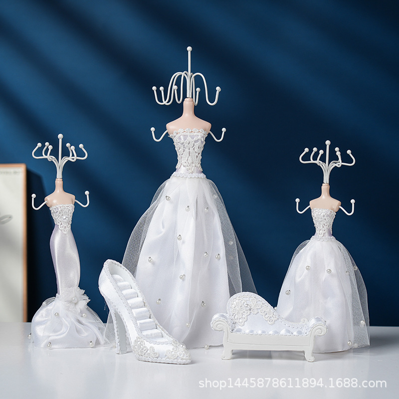 高級な白い家庭のショーウインドーにイヤリングのイヤリングのイヤリングの指輪のブレスレットのネックレスのアクセサリーの棚の展示棚の工芸品