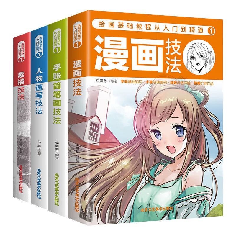 絵画の基礎チュートリアルは入門から1セット4冊の漫画の手帳の簡単な筆画人物のスケッチ技術に精通している