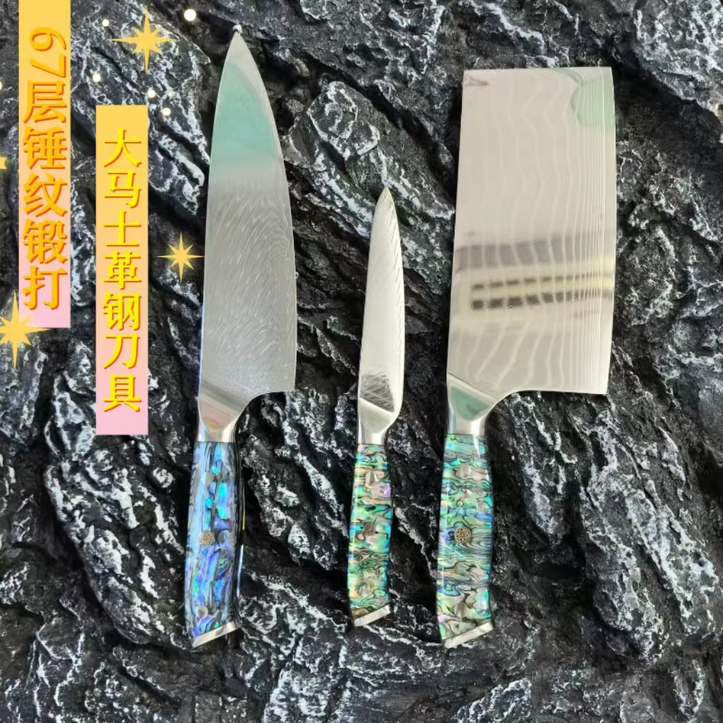 国境を越えたアワビの紋様の取っ手は鋭利で、ダマスカスの鋼刀のコックの刀は牛肉の刀の家庭の包丁の料理人の刃物を切ります。
