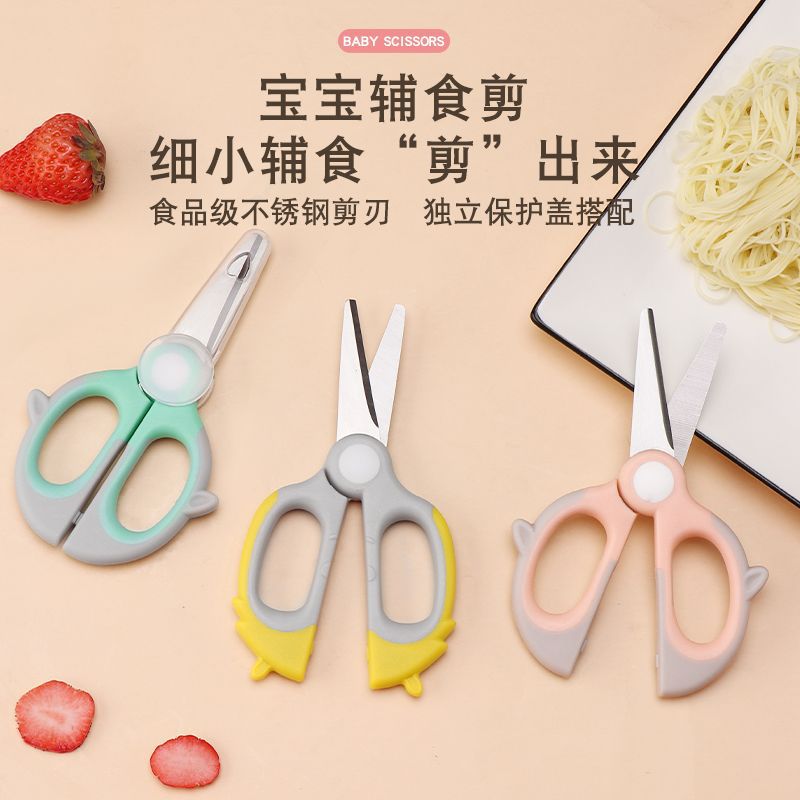 補助食はさみ赤ちゃん専用ステンレスは肉を切って野菜を切ることができます。子供の安全ステンレスは道具を切ります。
