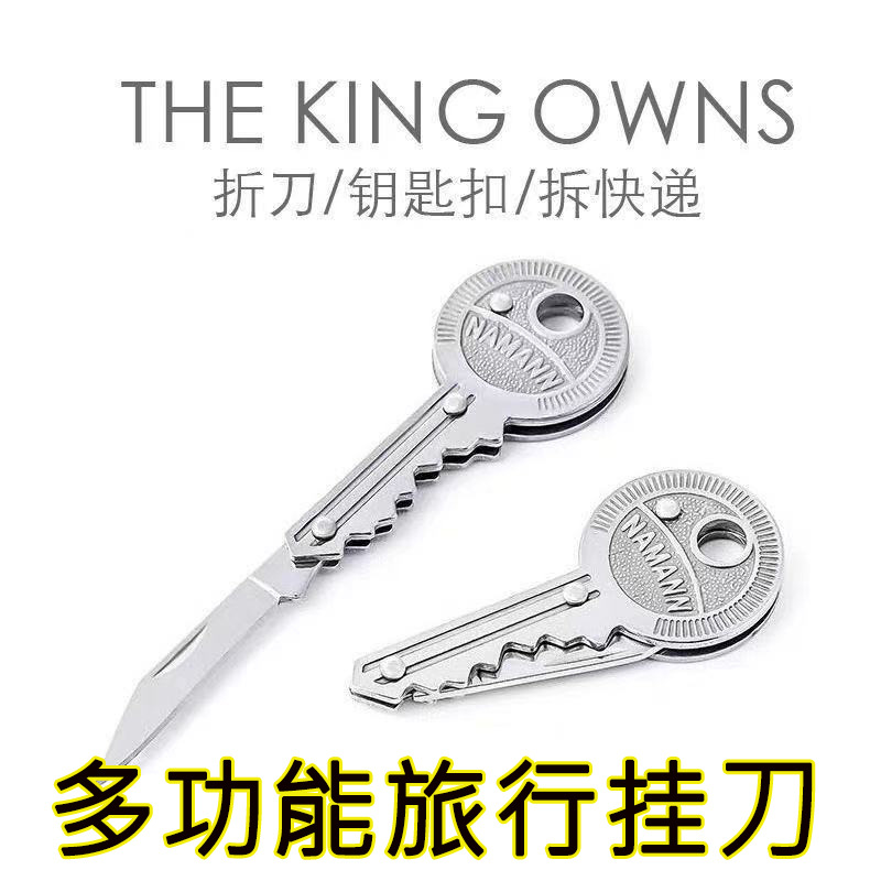 キーホルダーのナイフは折りたたみ可能です。ミニのストラップを持っています。