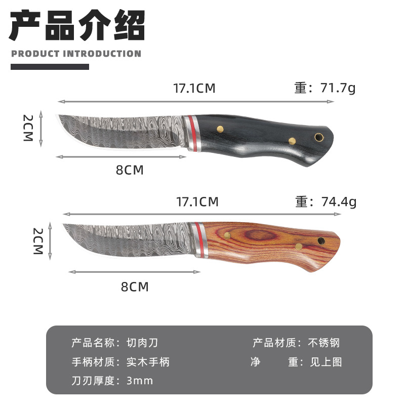 新品ハンドル付き肉切り包丁、鍛造された鋭いステンレス鋼の刃、木製ハンドル、携帯用レザーケース、小型ナイフ、キッチンで実用的