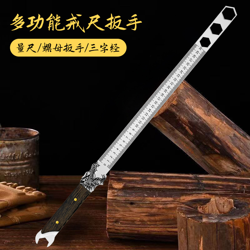 多機能レンチ戒尺屋外車載ステンレスナットレンチ防身厚測定尺三字経鋼尺