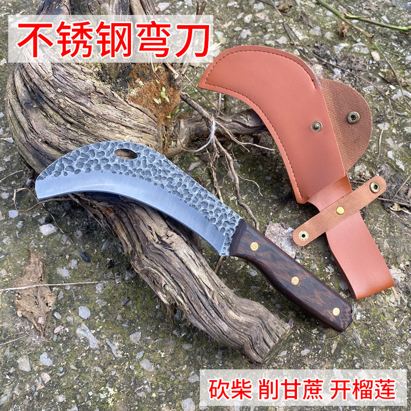 ステンレスのドリアンの刀は皮の刀のバナナの刀のパイナップルの蜜のサトウキビの屋外のキャンプの野外の鎌の曲がった刀のパイナップルの刀を剥ぎ取ります。