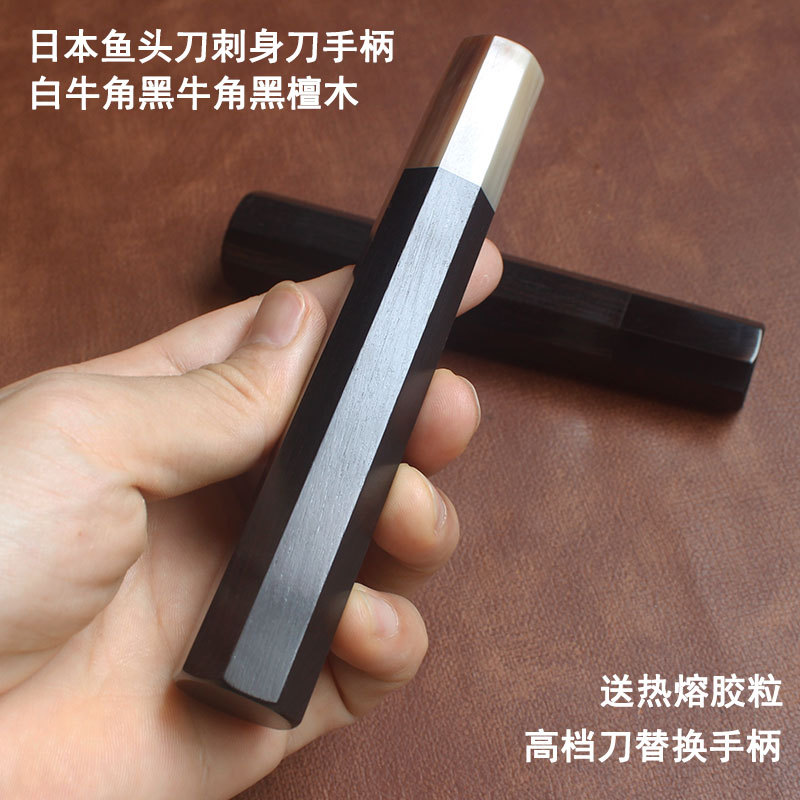牛の角の黒檀の木の八角形の柄の日本の柳の刃の魚の頭の刀の刺身の刀の取っ手は白い牛の角の黒い牛の角の刃を交換します。