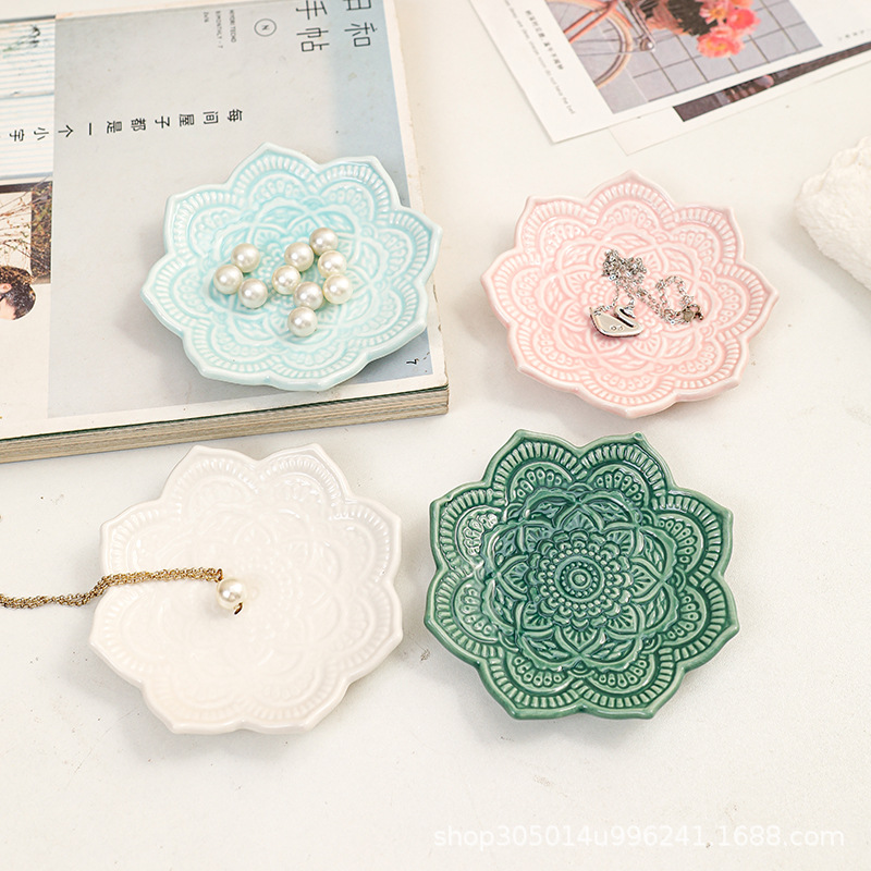 陶磁器ins風家庭創意置物収納アクセサリートレー窯変小皿アクセサリー収納装飾皿