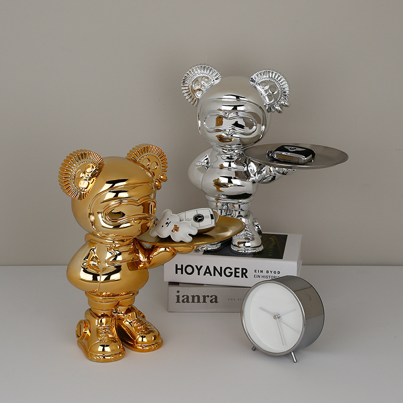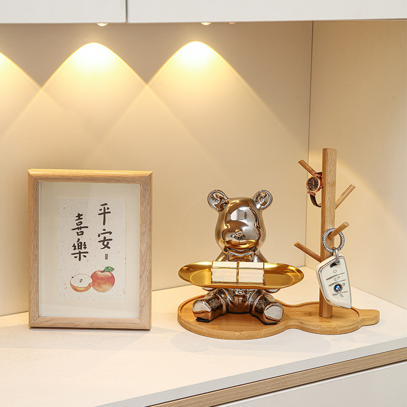 軽豪華創意装飾品熊トレー置物卸売り鍵キャンディー玄関収納リビングテレビ棚装飾