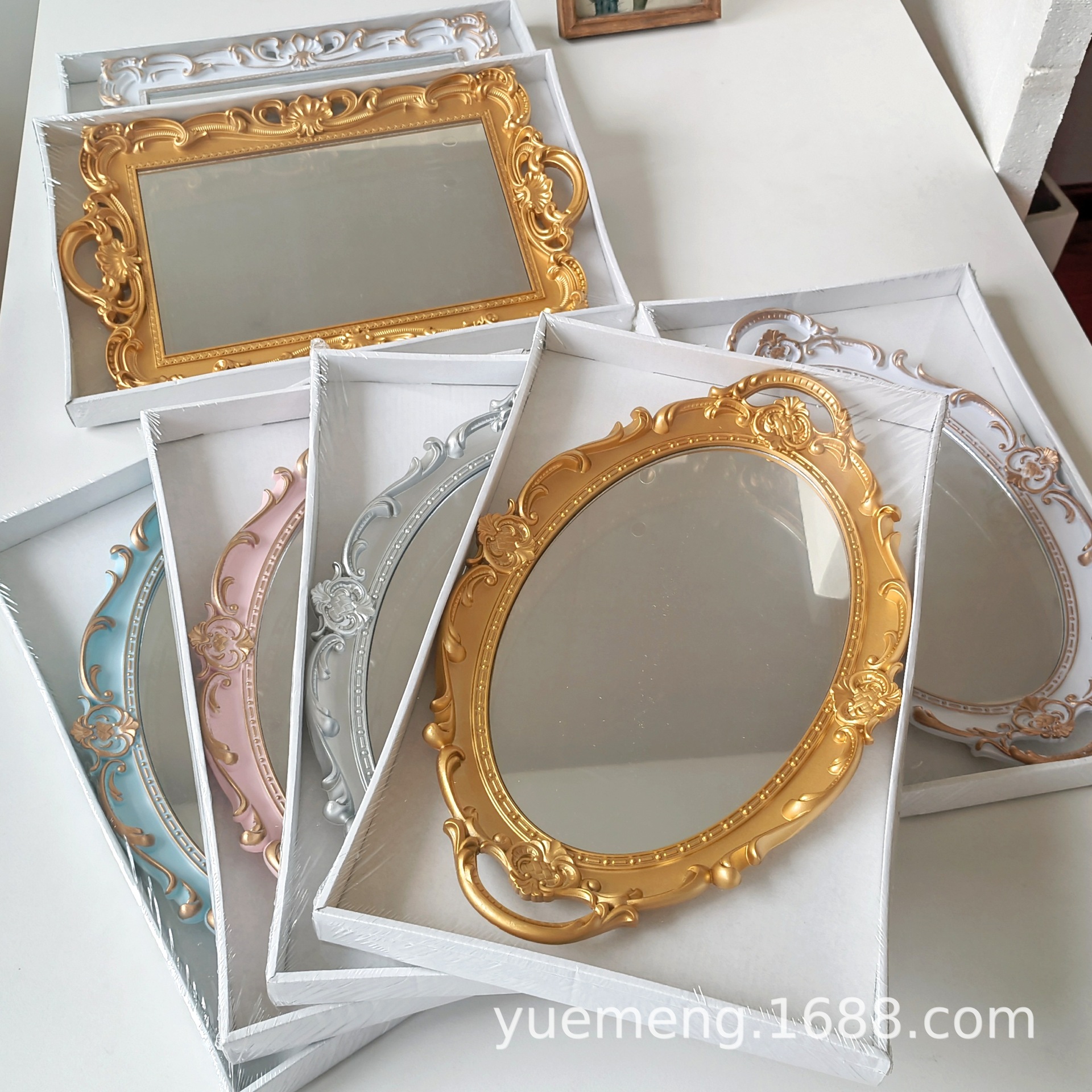 ヨーロッパ式鏡面展示寝室玄関写真置物鏡収納盤高颜値アクセサリー収納トレイ
