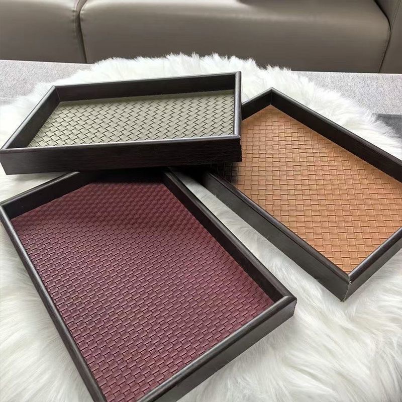 新品レザー収納皿ホーム置物トレー小物収納皿革革リビングテーブル織製収納皿