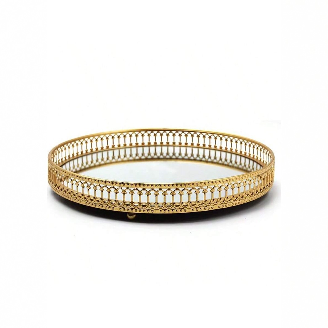 新型鏡面金属円形トレー簡易女子寝室化粧品展示盤