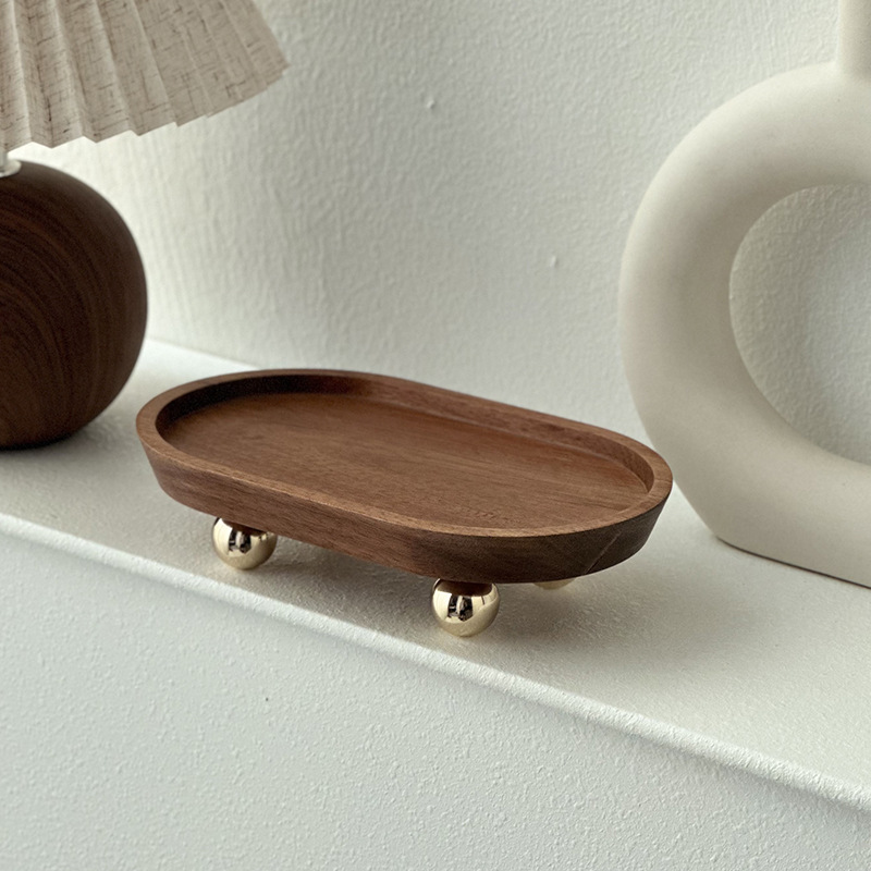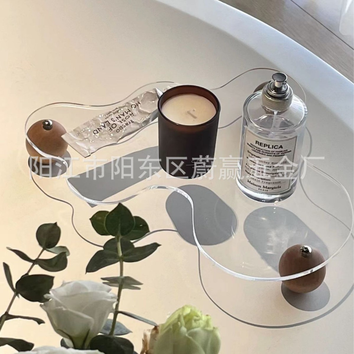 オリジナルデザイン北欧アクリル透明トレイ収納ジュエリーアロマ化粧品装飾品ライト高級無垢材ボール底