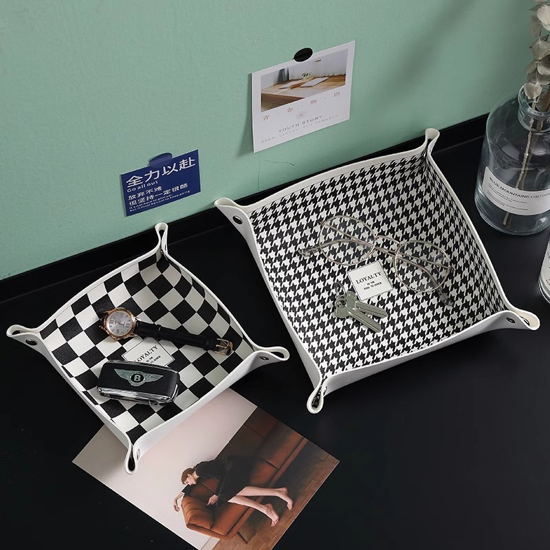 北欧シンプル千鳥格収納盤キーアクセサリー口紅化粧品デスクトップ下駄箱寮収納収納ケース
