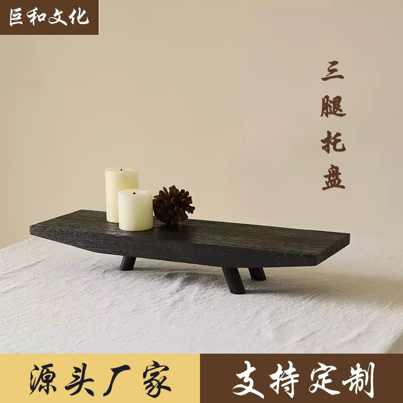2025年新中式侘び寂び風トレイ、無垢材三脚木目調置物、茶室民宿卓上ホームデコレーション三脚トレイ