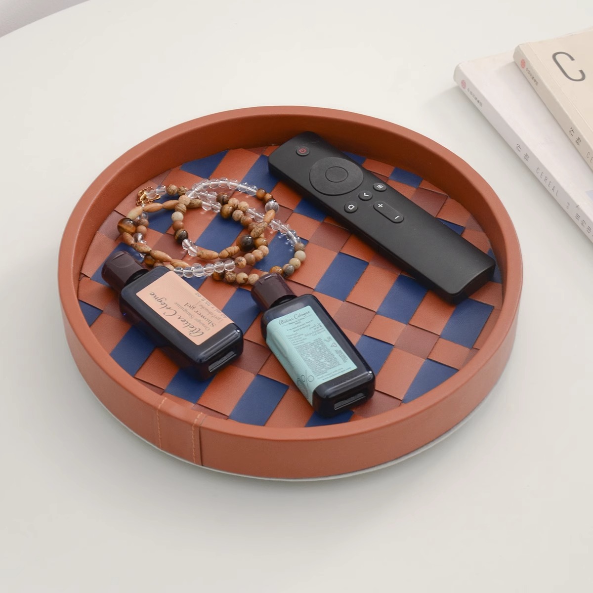 新品レザー収納盤ホーム置物トレー小物収納盤金物リビングテーブル回転収納盤