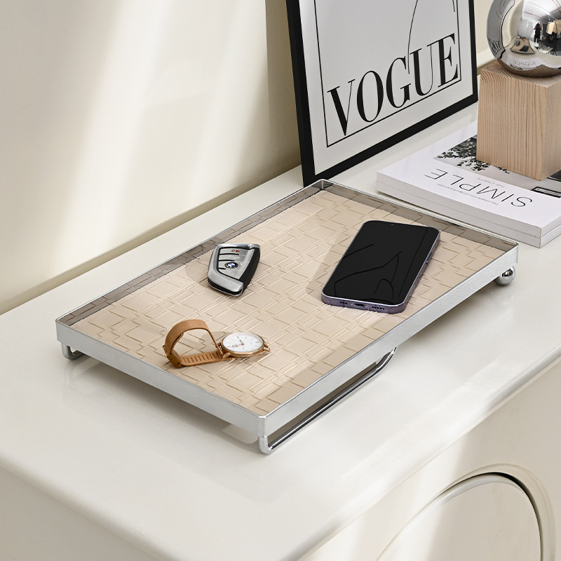 クロスボーダーライト高級スクエアレザートレイホテル香水装飾品収納トレイ鉄多目的ホームデコレーショントレイ