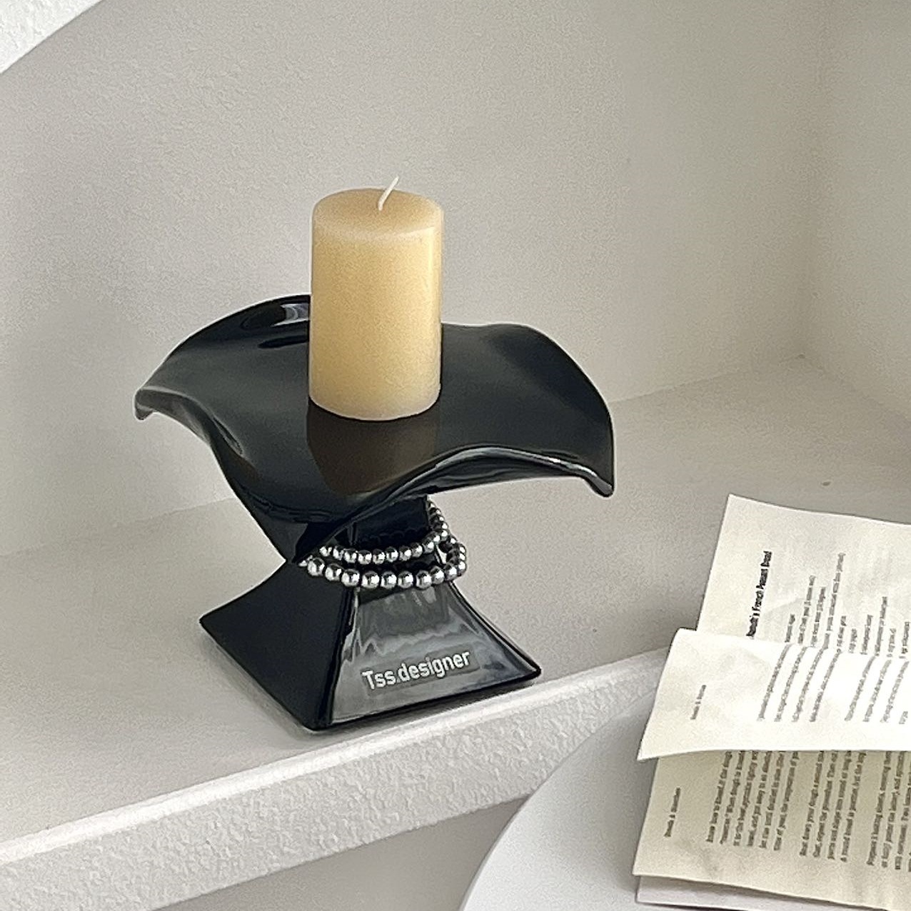 寂風実木黒芸術トレーレトロ着地香薫ろうそく台中国式禅意装飾置物
