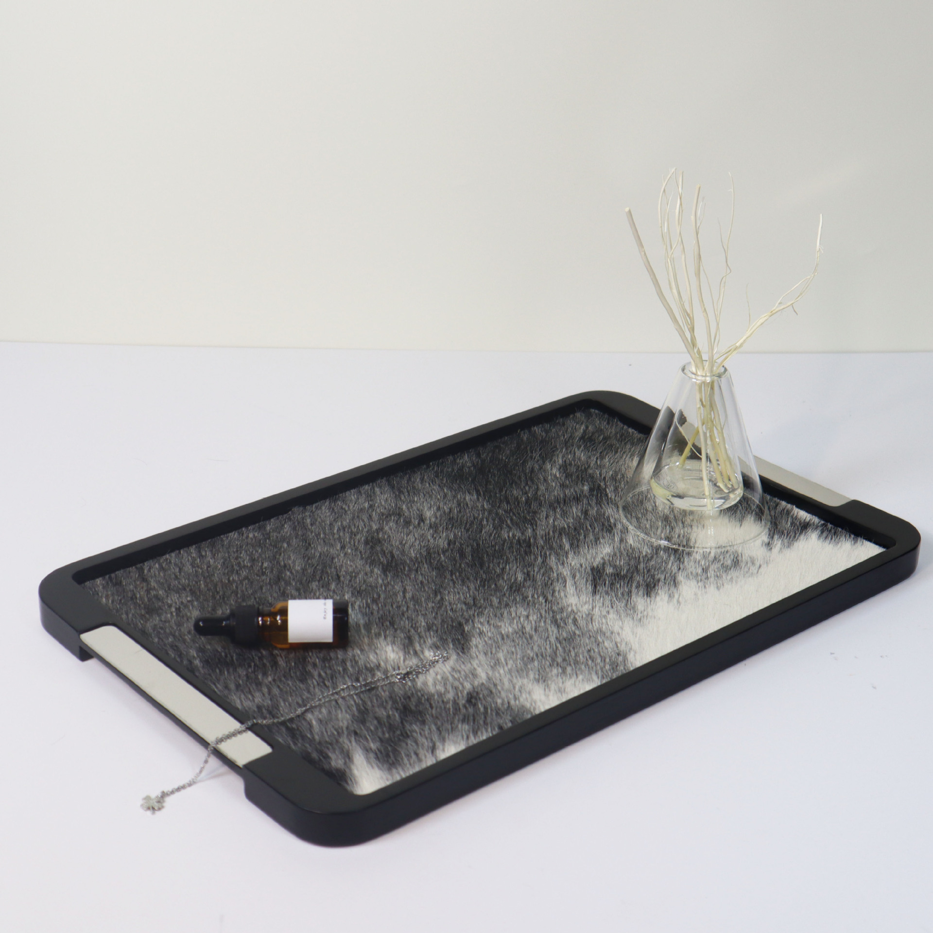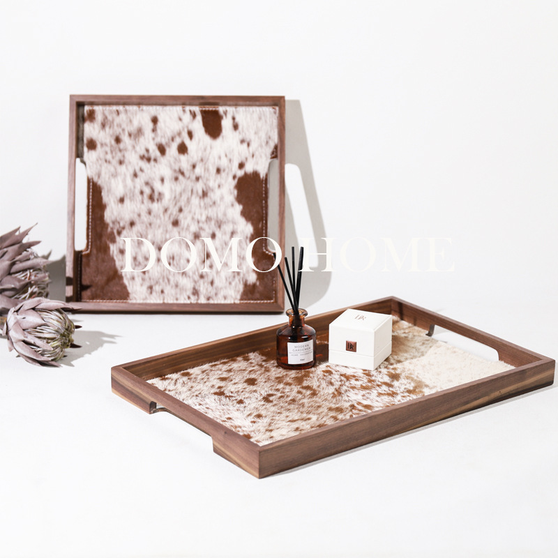 現代のシンプルで高級感のある本革の馬毛香薫の装飾トレーの置物のリビングルームの部屋のフードの間の家庭の装飾品