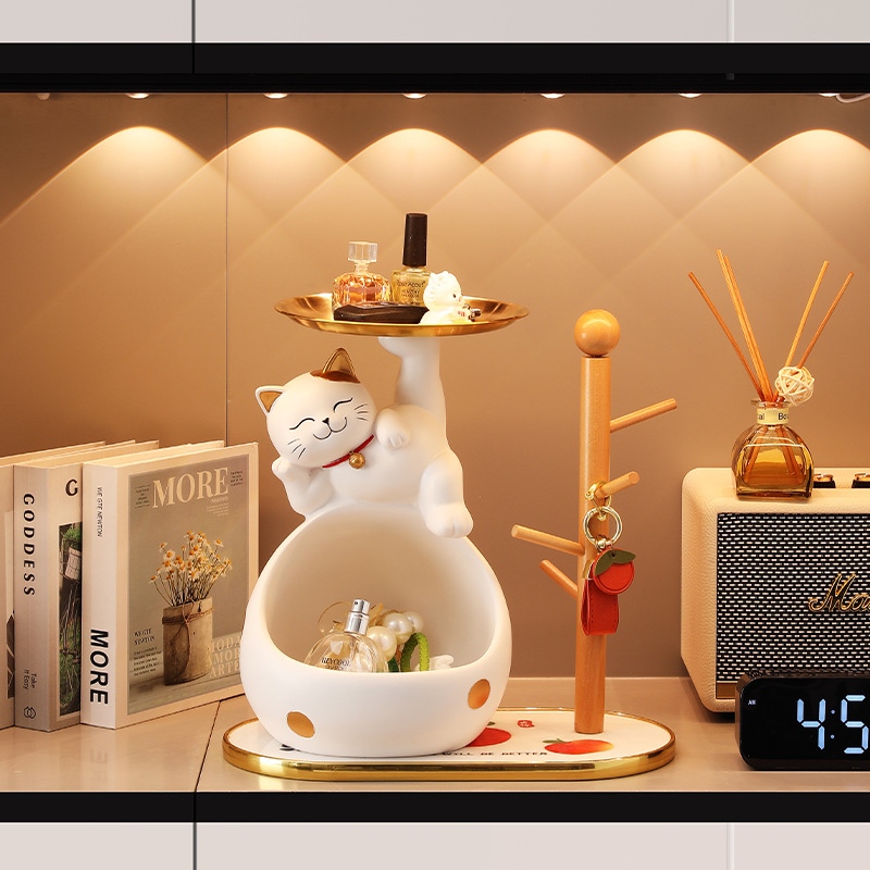 クリエイティブ二重収納トレイ招き猫置物店舗フロントレジホームオープンプレゼント招き猫