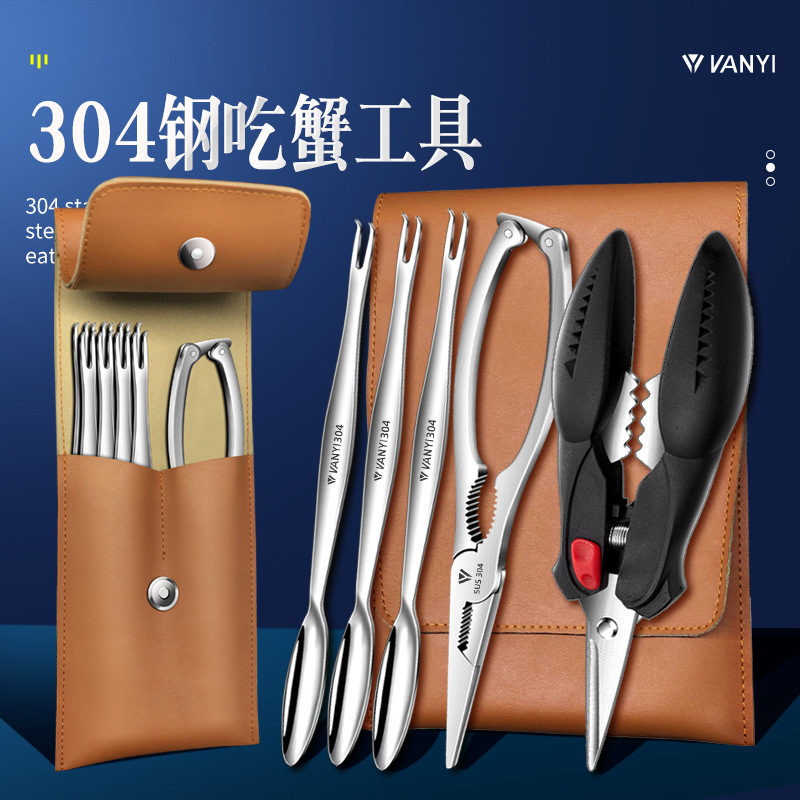 カニを食べる道具カニ八件304ステンレス製カニを解体してカニ専用神器を剥ぎ取るはさみ3点セット