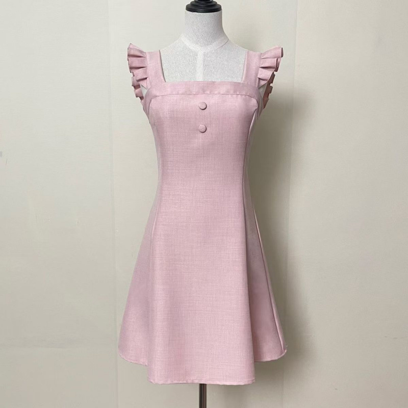 2025年新作小柄な人向けピンクのスクエアネックドレスはスリムでウエストを細くします