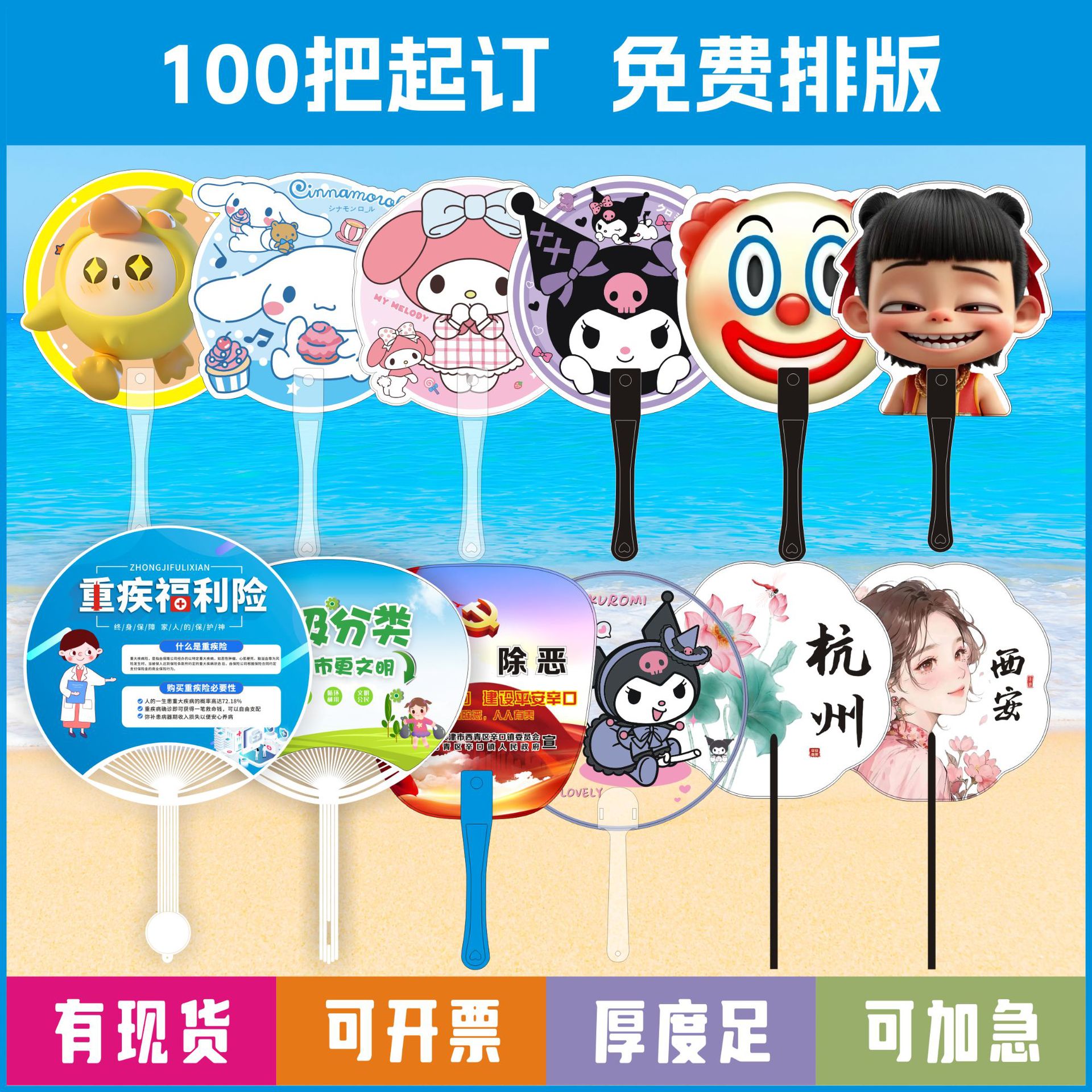 広告扇カスタムpp広告扇アニメ広告団扇プラスチックハンドル扇子広告宣伝扇子カスタム