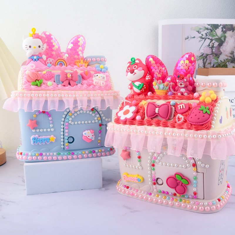 クリームガムDIY手作り小さな家貯金箱材料バッグ女の子漫画貯金箱知育玩具