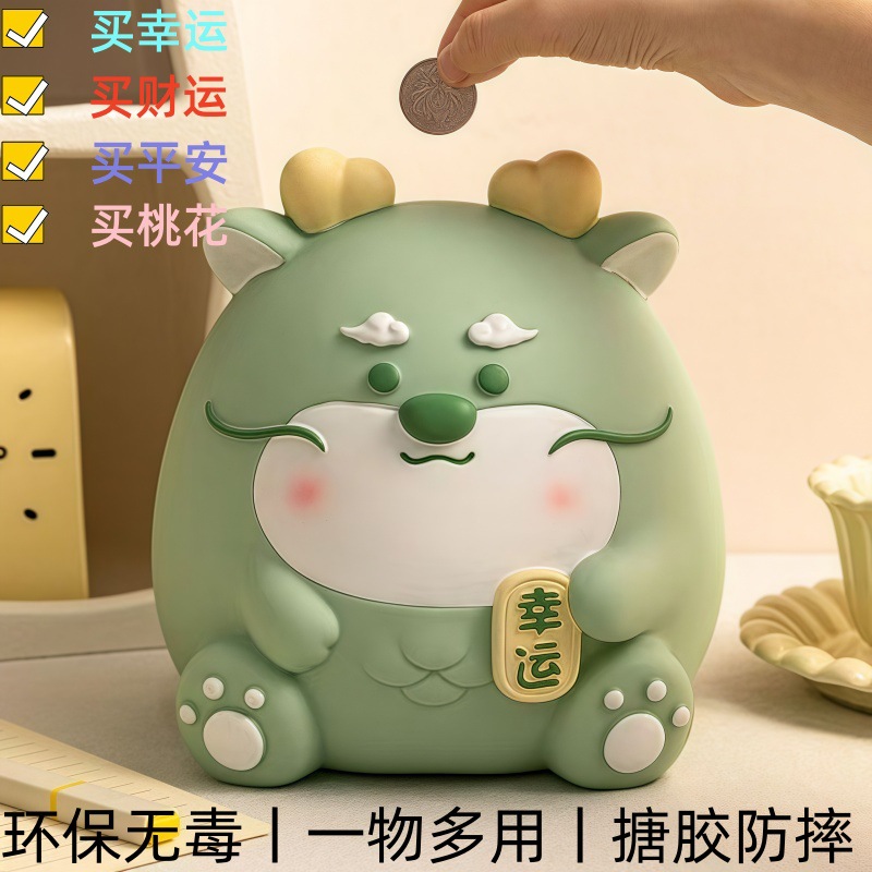 大きな幸運のドラゴンの貯金箱、貯金習慣、トゥートピッグ、子供用漫画の幸運のドラゴンのおもちゃ、落下防止装飾品