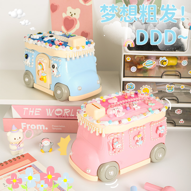 クリームゴム貯金箱子供漫画バス紙幣貯金箱ネット赤男女の子コイン貯金箱収納