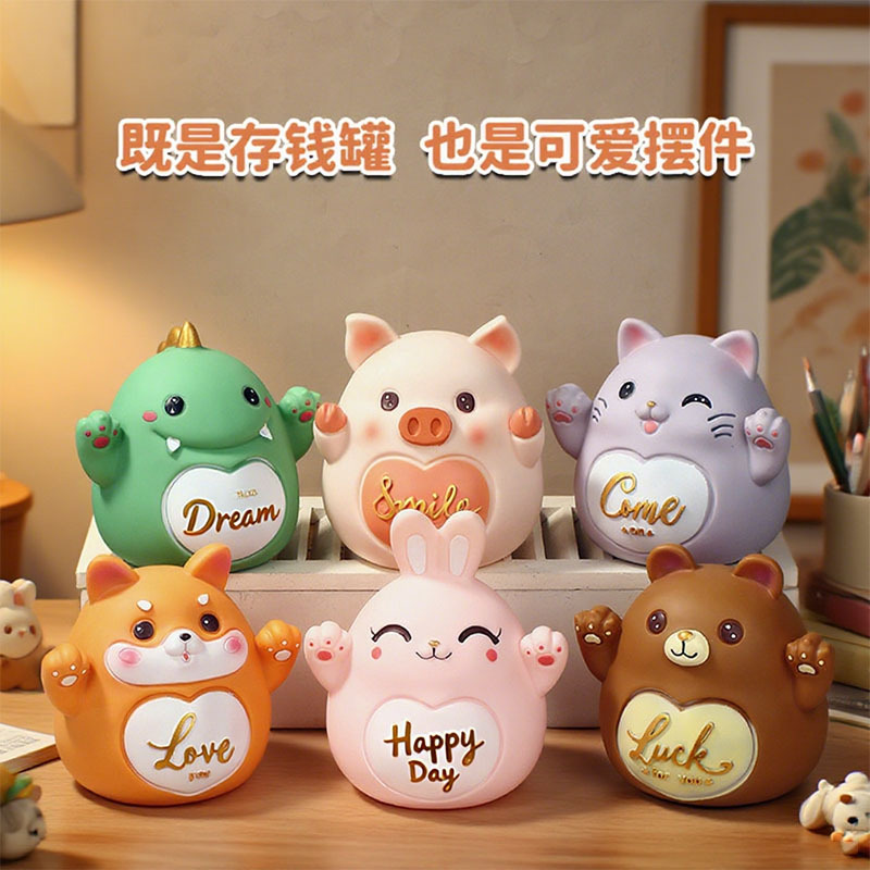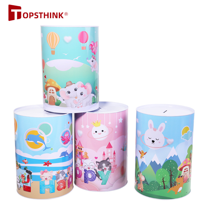 2024国境を越えた新しいアイデアは小銭缶アニメの模様を密封して、洗練された貯金箱の置物は貯蓄できない