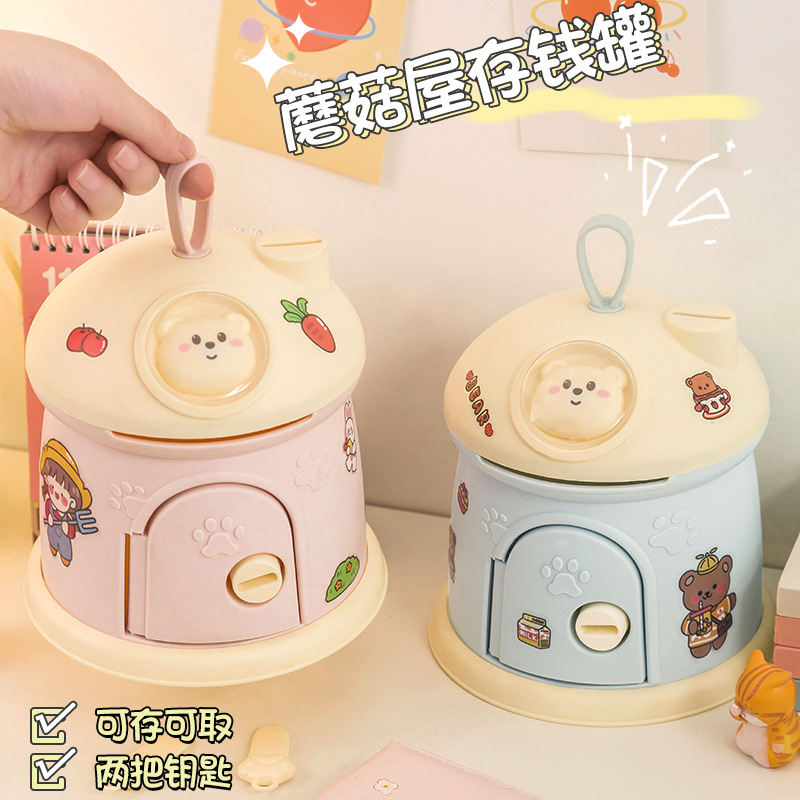 クリエイティブ子供のおもちゃかわいいクマ貯金箱アクセス可能なキー貯金箱きのこ屋漫画貯金箱