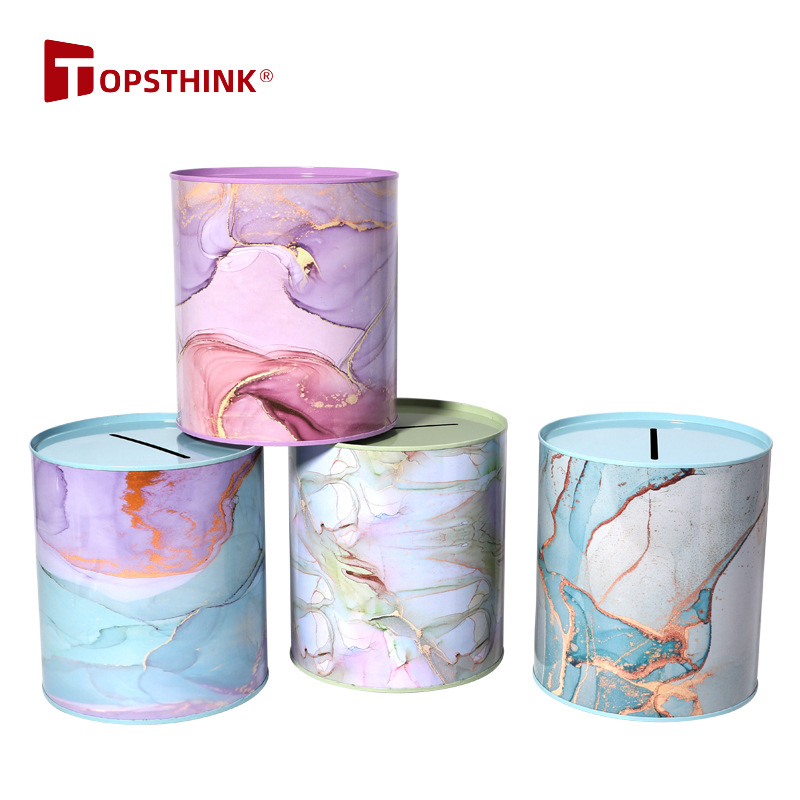 大理石の貯金箱の質感がはっきりしていて、手触りが滑らかで、大きな密封円筒ブリキ貯金箱しか入れられません。