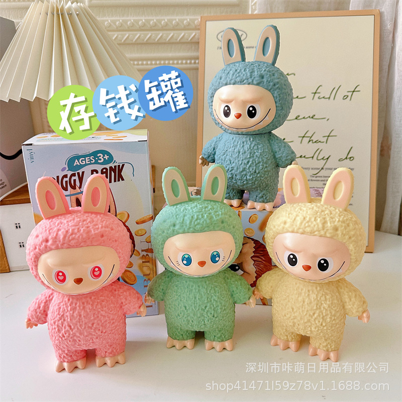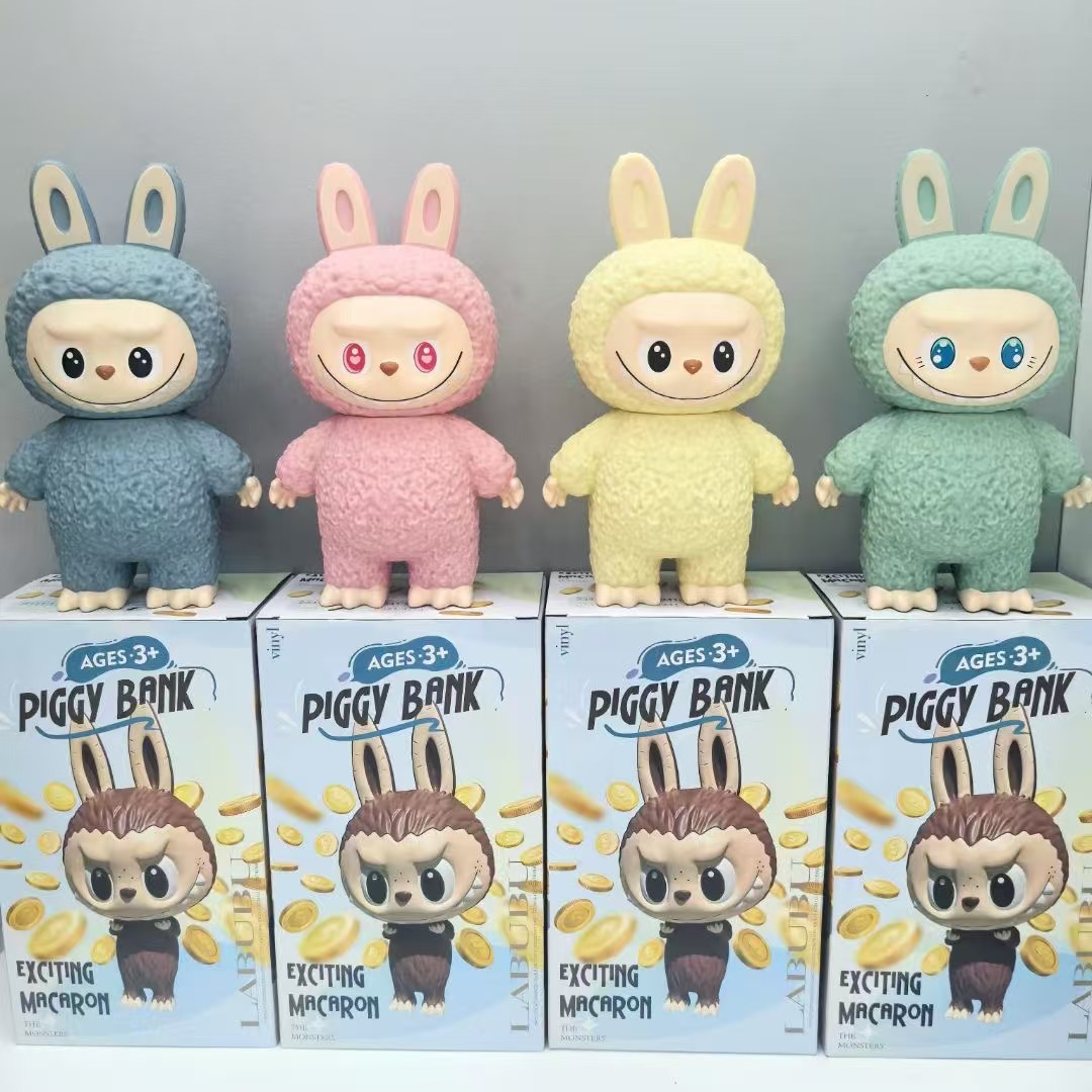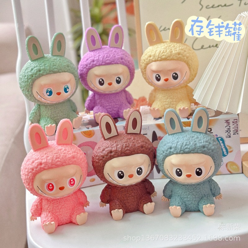 ラブブ貯金箱デスクトップ立体ラブブコイン貯金箱子供用貯金箱マカロンビニール貯金箱