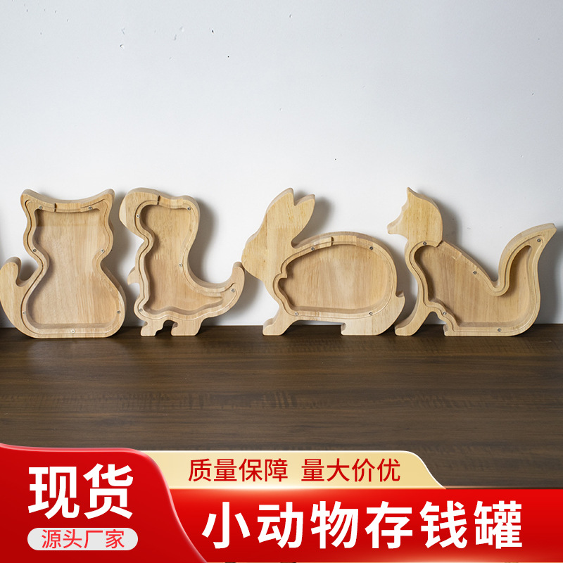 木製貯金箱 子供用紙幣硬貨小銭貯金箱 漫画風透明アクリル動物貯金箱飾り