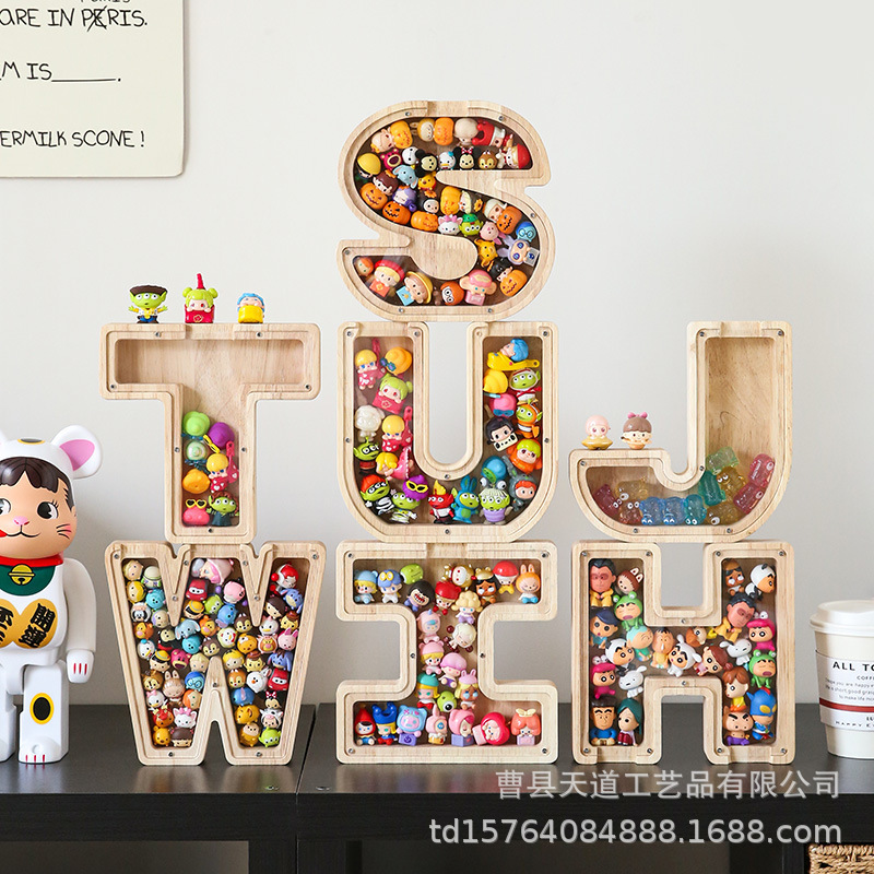 木製小萌粒収納ケースアルファベットバブルマットケース漫画ツイスト展示ケース収納ケース透明貯金箱