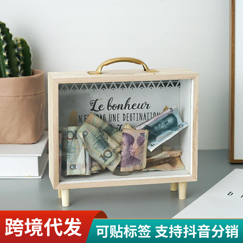 国境を越えた北欧風の実木は貯金箱の子供の貯金箱の喫茶店のチップ缶の木製の置物しか入れない