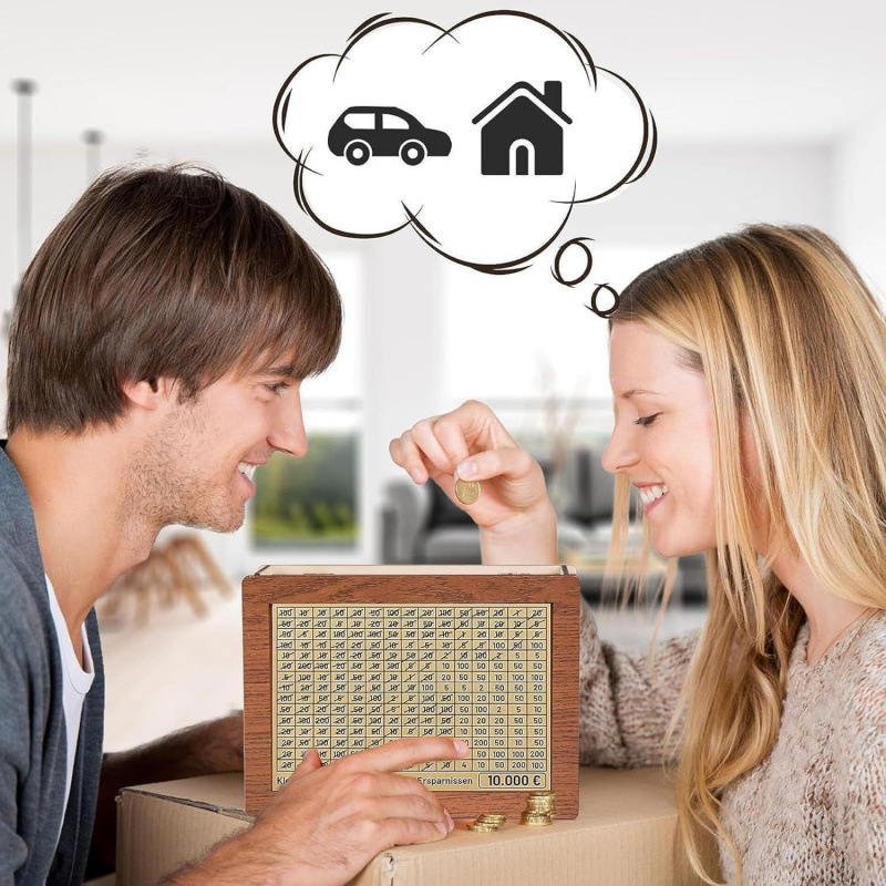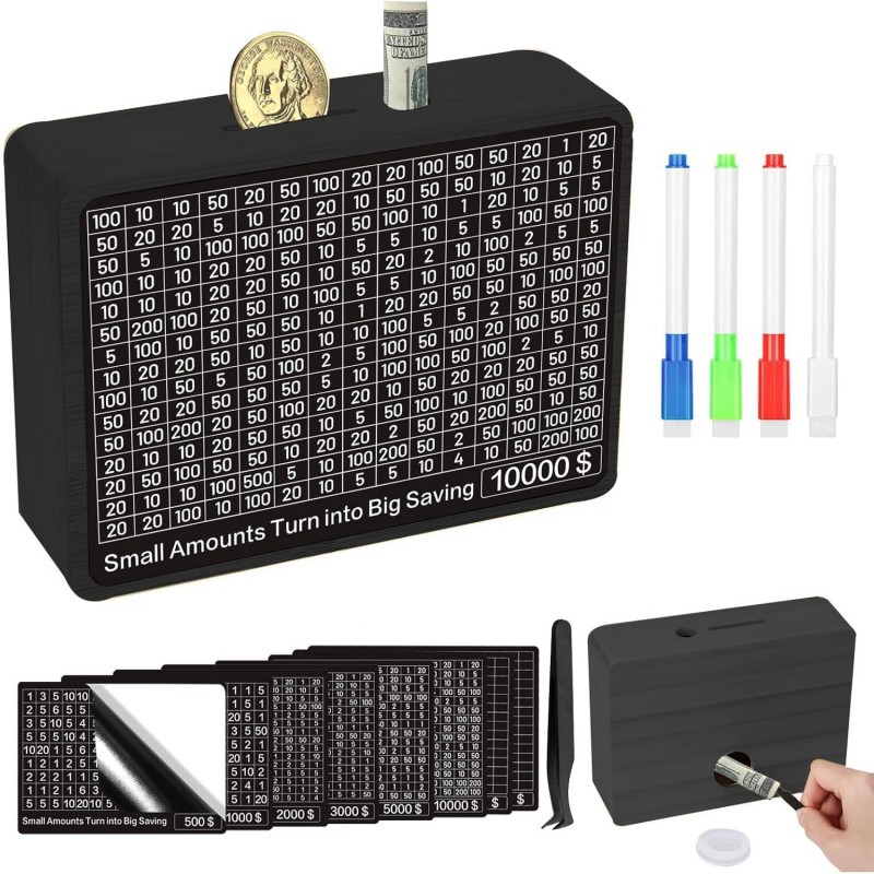 スポットクロスボーダークリエイティブ貯金箱貯金チャレンジ8個金額シール木製工芸品diy木製貯金箱
