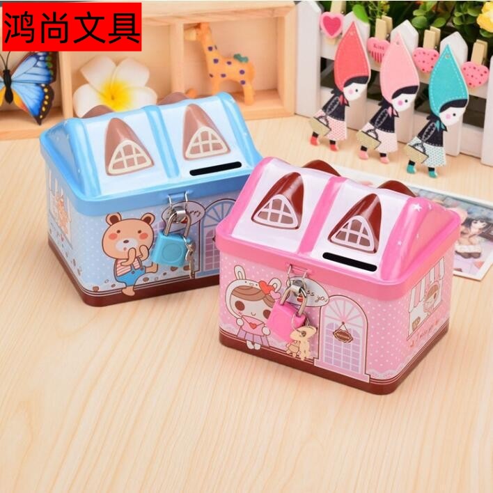 小さい家の貯金箱の創意家屋の男女の貯金箱の貯金箱の0銭のお金の缶の鉄の皮の子供の学生の賞品