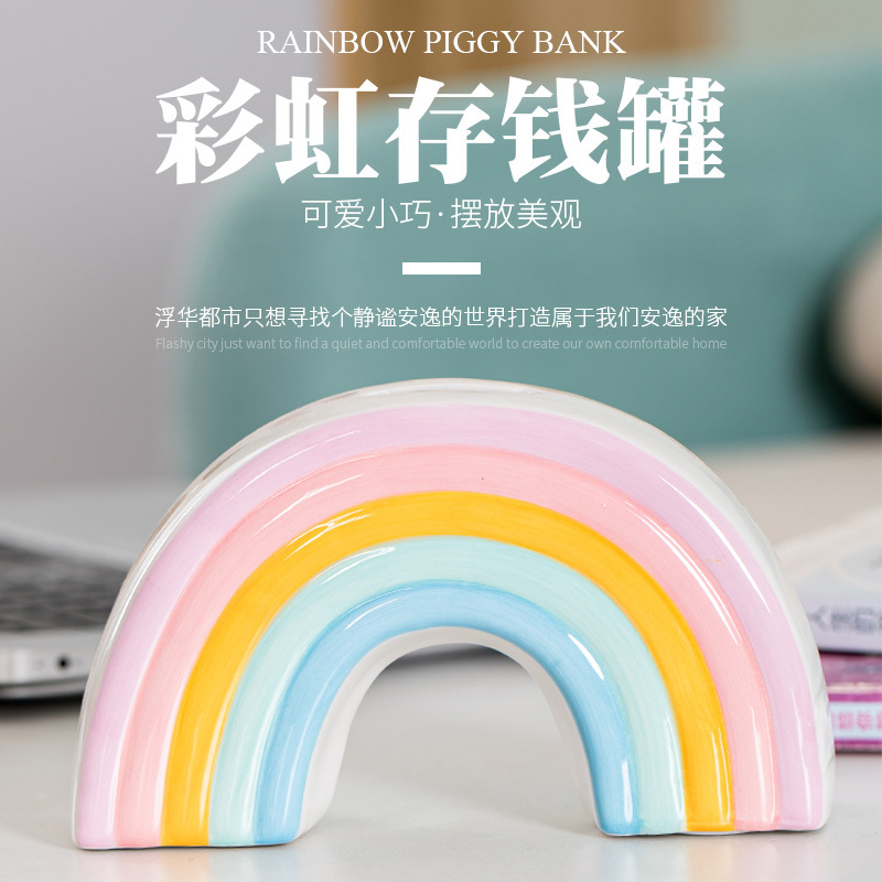 メーカーの卸売り陶磁器の虹の貯金箱の家庭の置物の創意的な個性の子供は貯金箱を持つことができます。
