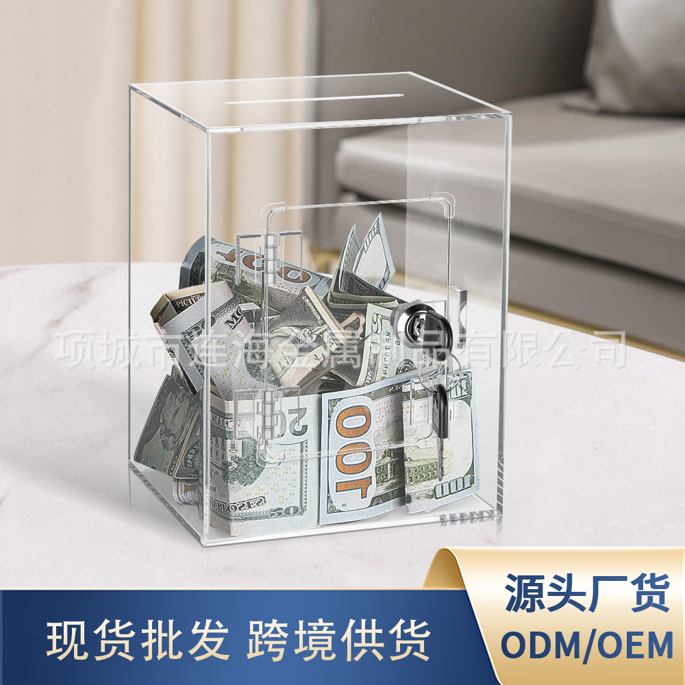 クロスボーダー爆発モデル透明貯金箱アクリル貯金箱シンプルな大人の貯金箱キー付きロック付き