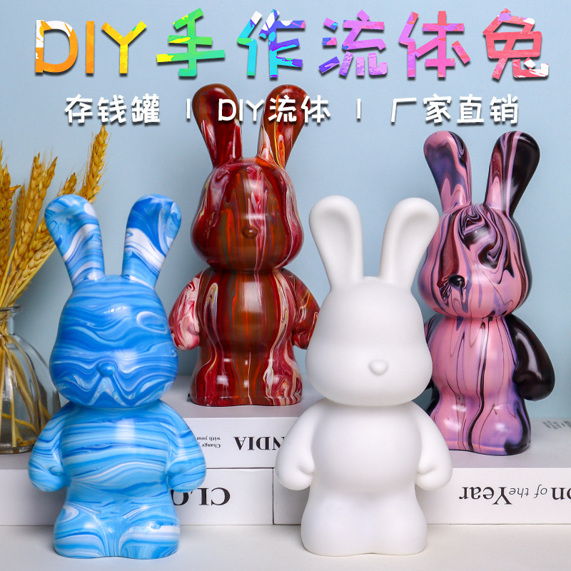 流体ウサギ白胚卸売り貯金箱diy置物落書き手作り流体ウサギ子供貯金箱露店卸売り