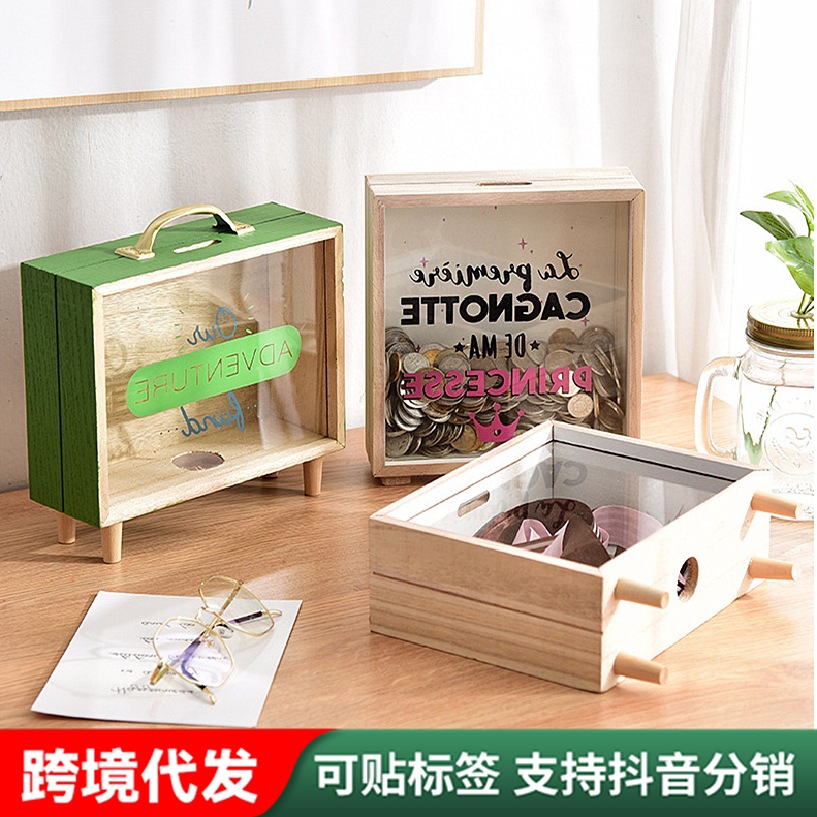 北欧ins創意木製家庭貯金箱寝室のデスクトップ装飾置物写真撮影道具雑貨収納ケース