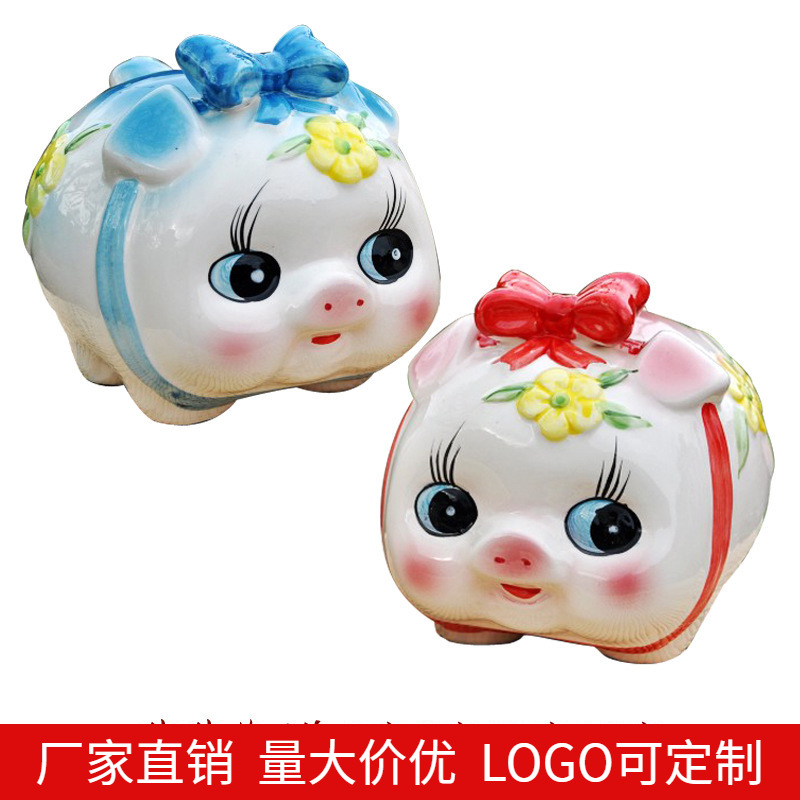 豚貯金箱陶磁器彩色絵豚年創意漫画小花豚貯金箱家庭置物工芸品大サイズ