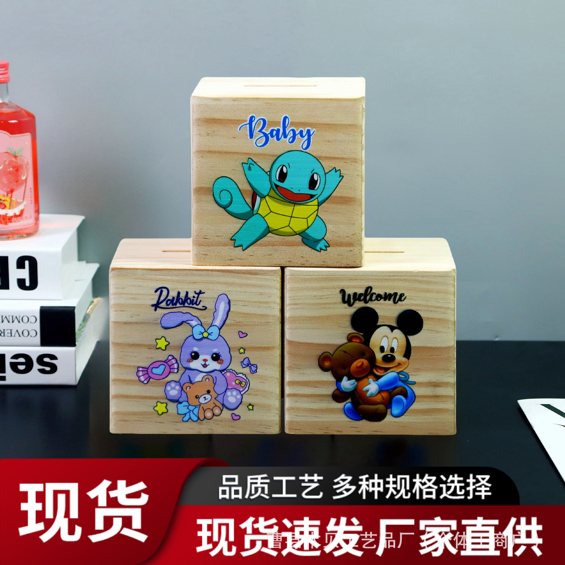 現物木製子供貯金箱漫画小銭コイン貯金箱子供祝日プレゼント育成貯金意識
