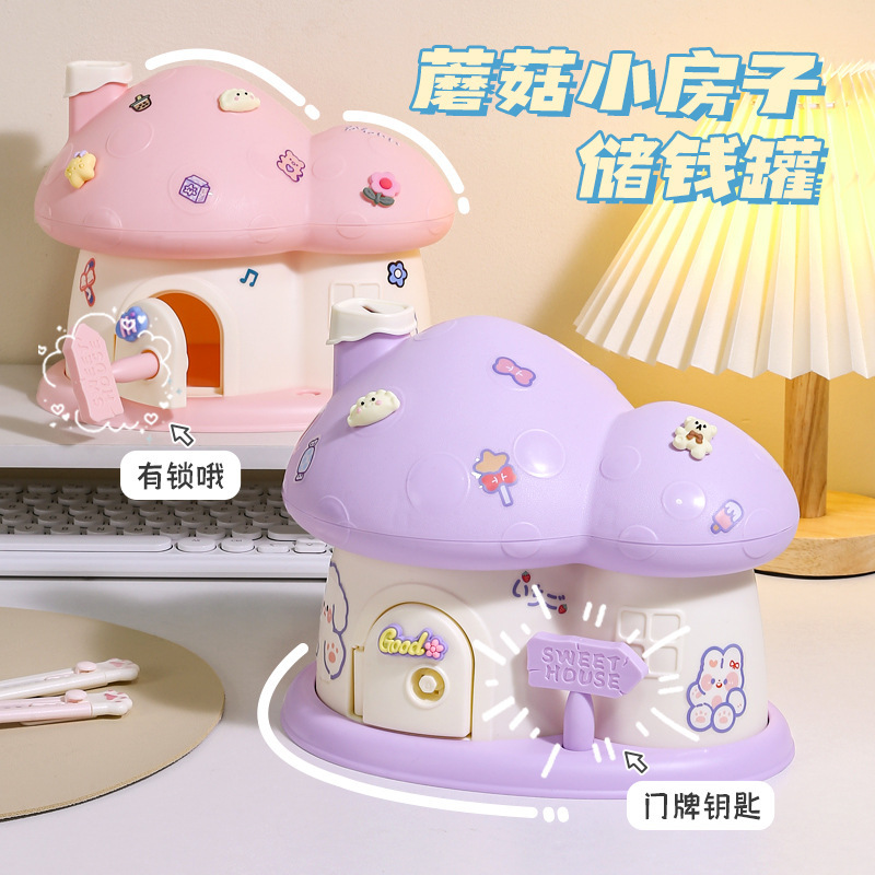 2025年 かわいい貯金箱 女の子は入っても出れない インターネットセレブ 男の子 子供用パスワード コイン ミニキノコ貯金箱