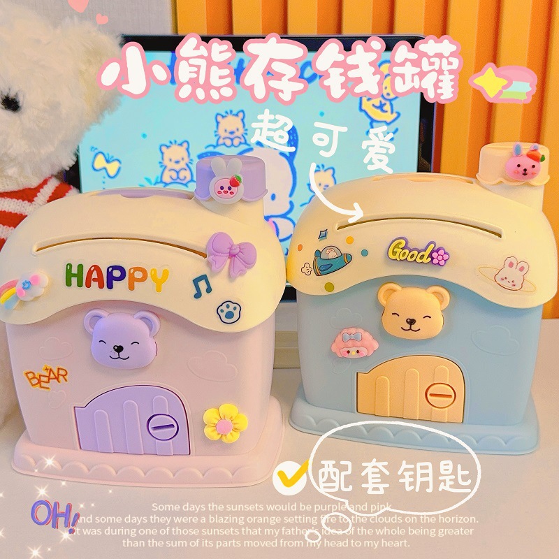 クマの家の貯金箱、子供用の貯金箱、落下防止、かわいいキーボックス、女の子と男の子へのギフト