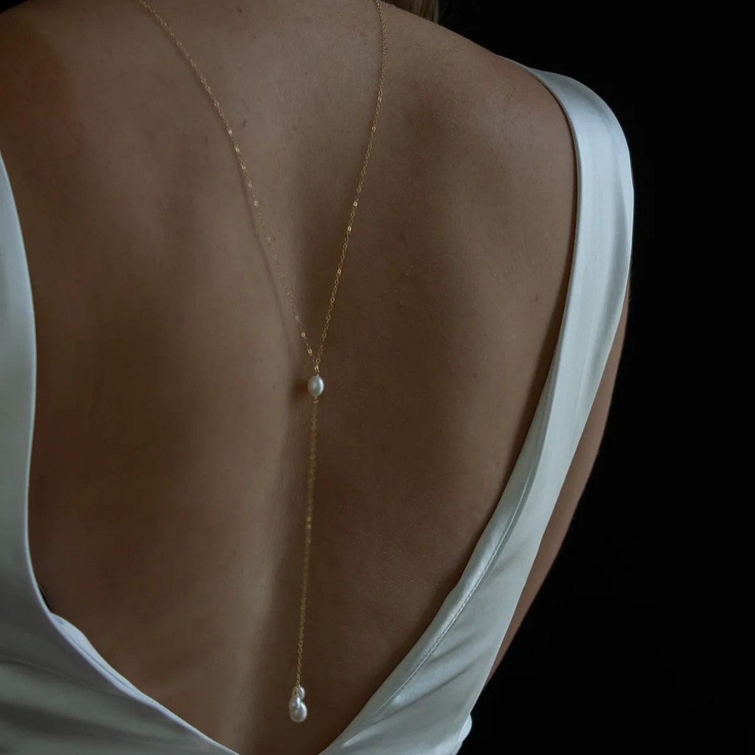アマゾンの爆発的な花嫁の結婚式の真珠のバックチェーンのネックレス