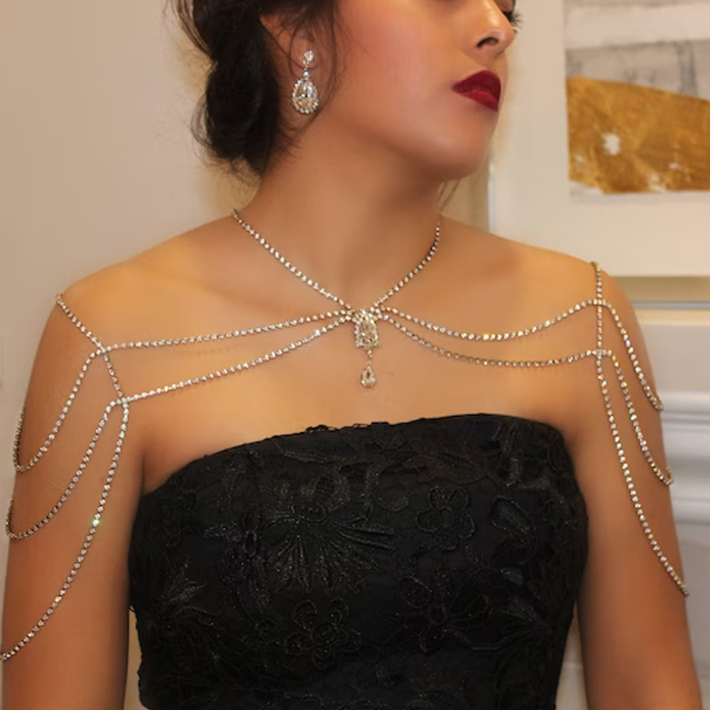 クロスボーダー爆金ドリルクロスバックチェーンシンプル多列気質バックチェーン結婚式アクセサリーShoulder chain